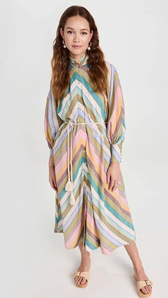 - Braided tassel tie self-belt with wood bead accents