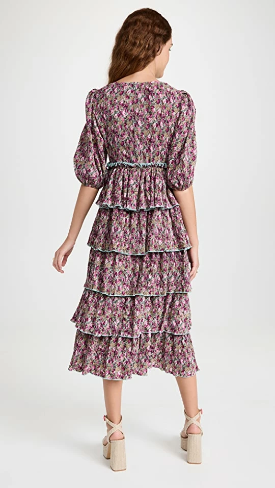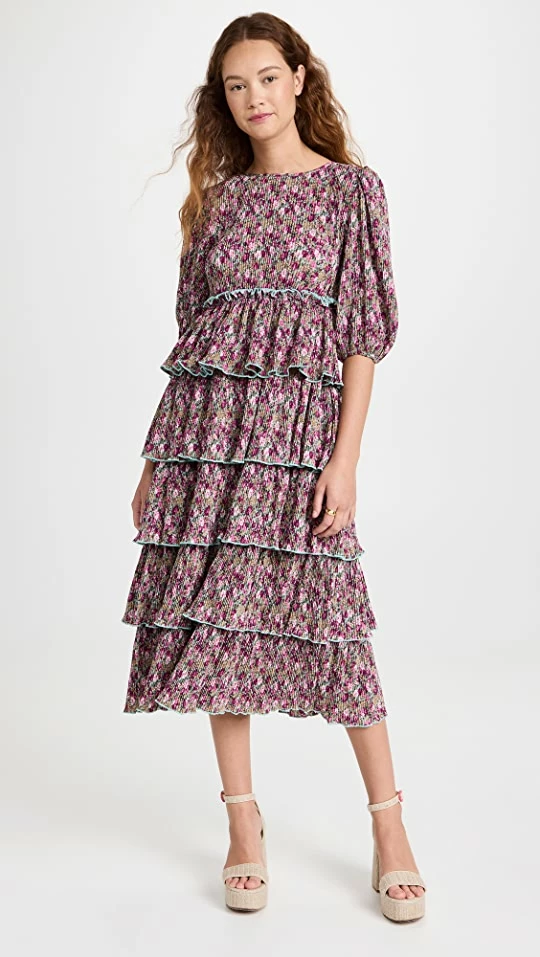 - Jewel neckline and 3/4 puff sleeves with elastic cuffs