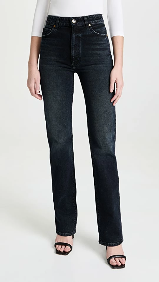 - High-rise, straight-leg cut