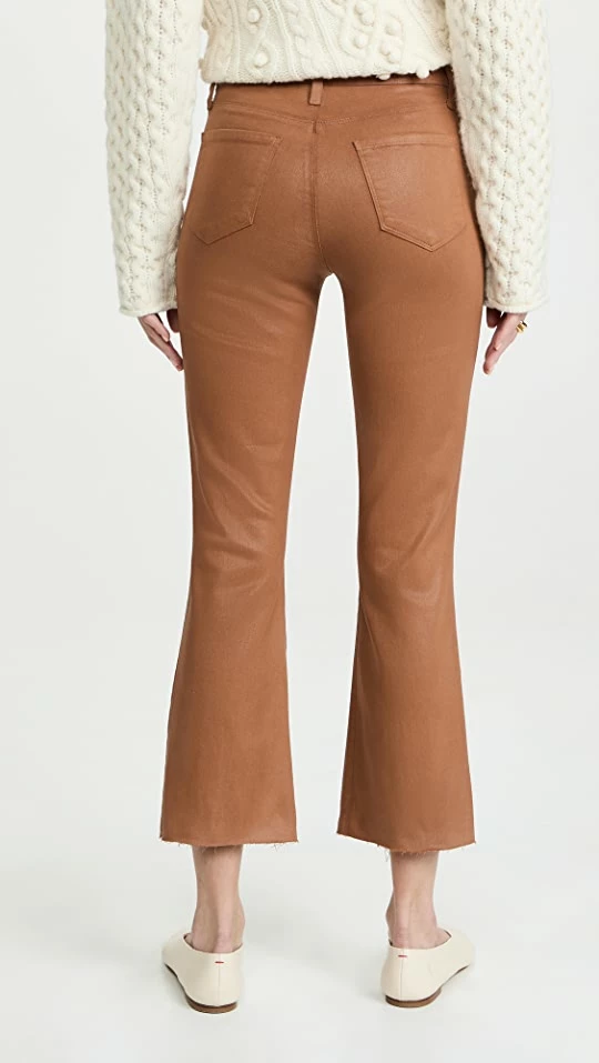 - Flare silhouette with raw hem