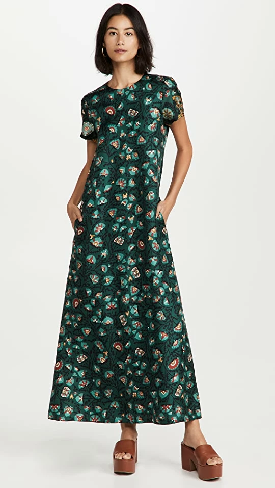 A signature silk midi from a label loved best for bold prints. This La Double J dress features a darkly colored retro print and a swingy, versatile silhouette that’s easy to pair with all sorts of sandals and heels.