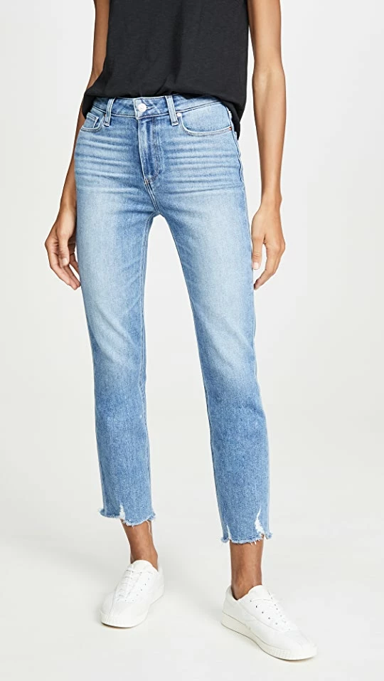 - Ankle length with shredded hem