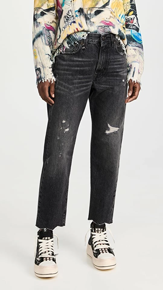 - Straight-leg cut and raw cuffs