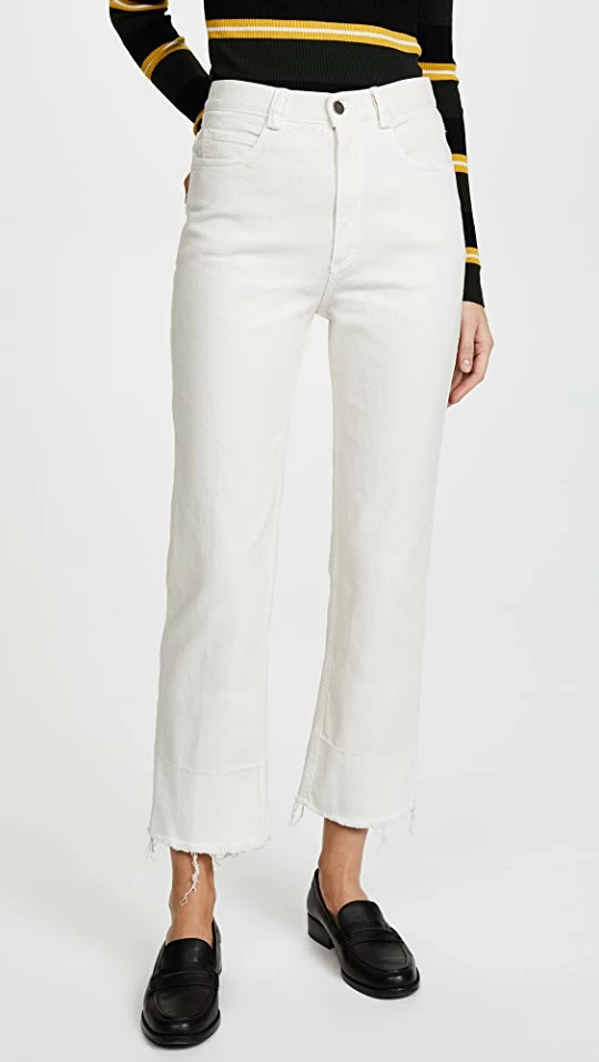 - High-waisted, slim-straight silhouette