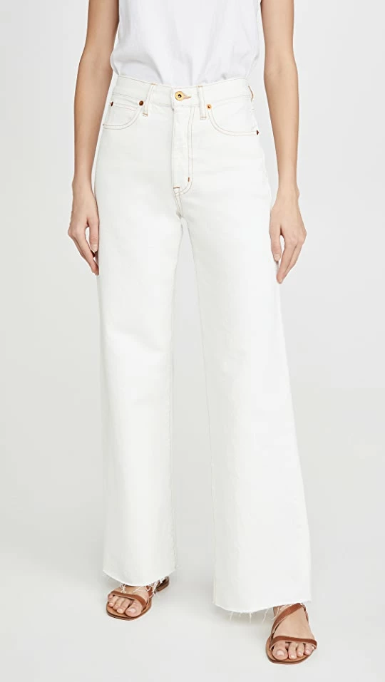 These high-waisted SLVRLAKE jeans feature a wide-leg silhouette with unfinished cuffs. Tuck in a basic white tee for a clean, monochromatic look.